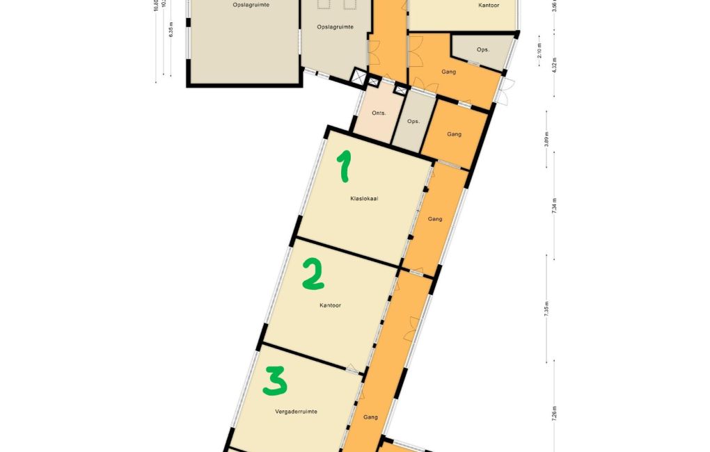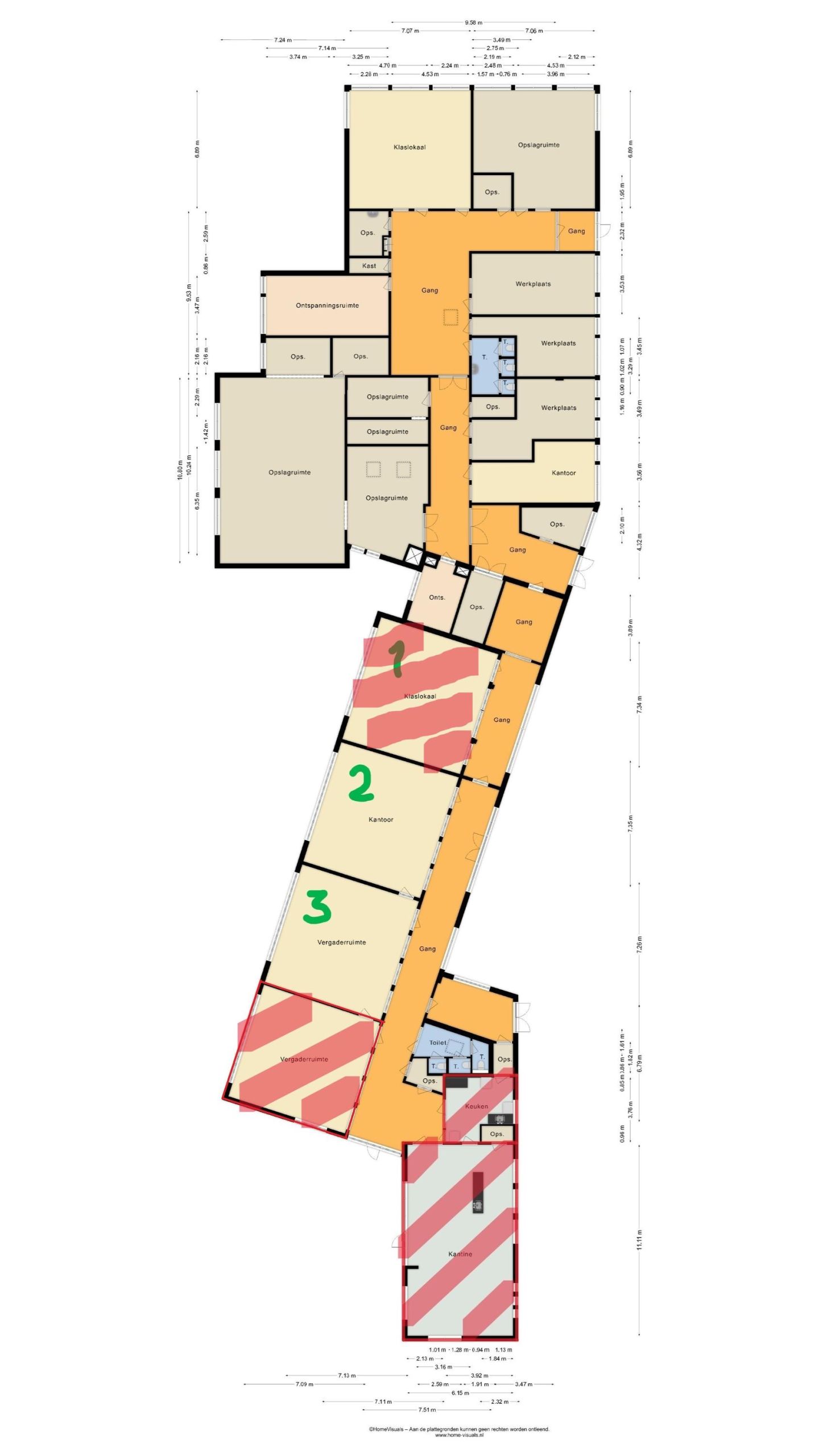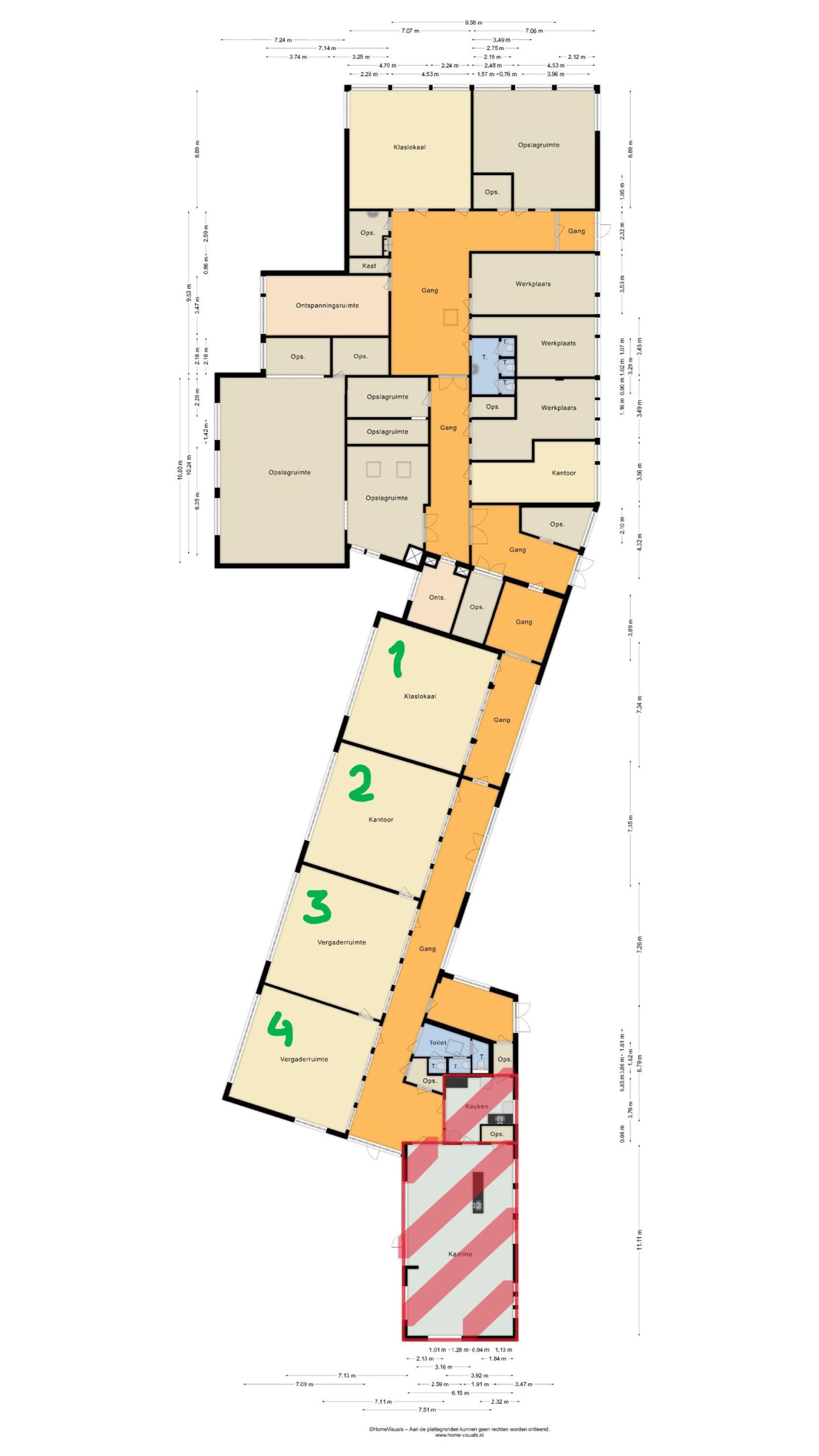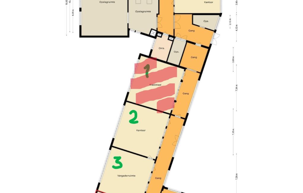 - Klaslokalen/kantoorunits met veel lichtinval, gesitueerd aan de oostzijde van het pand.