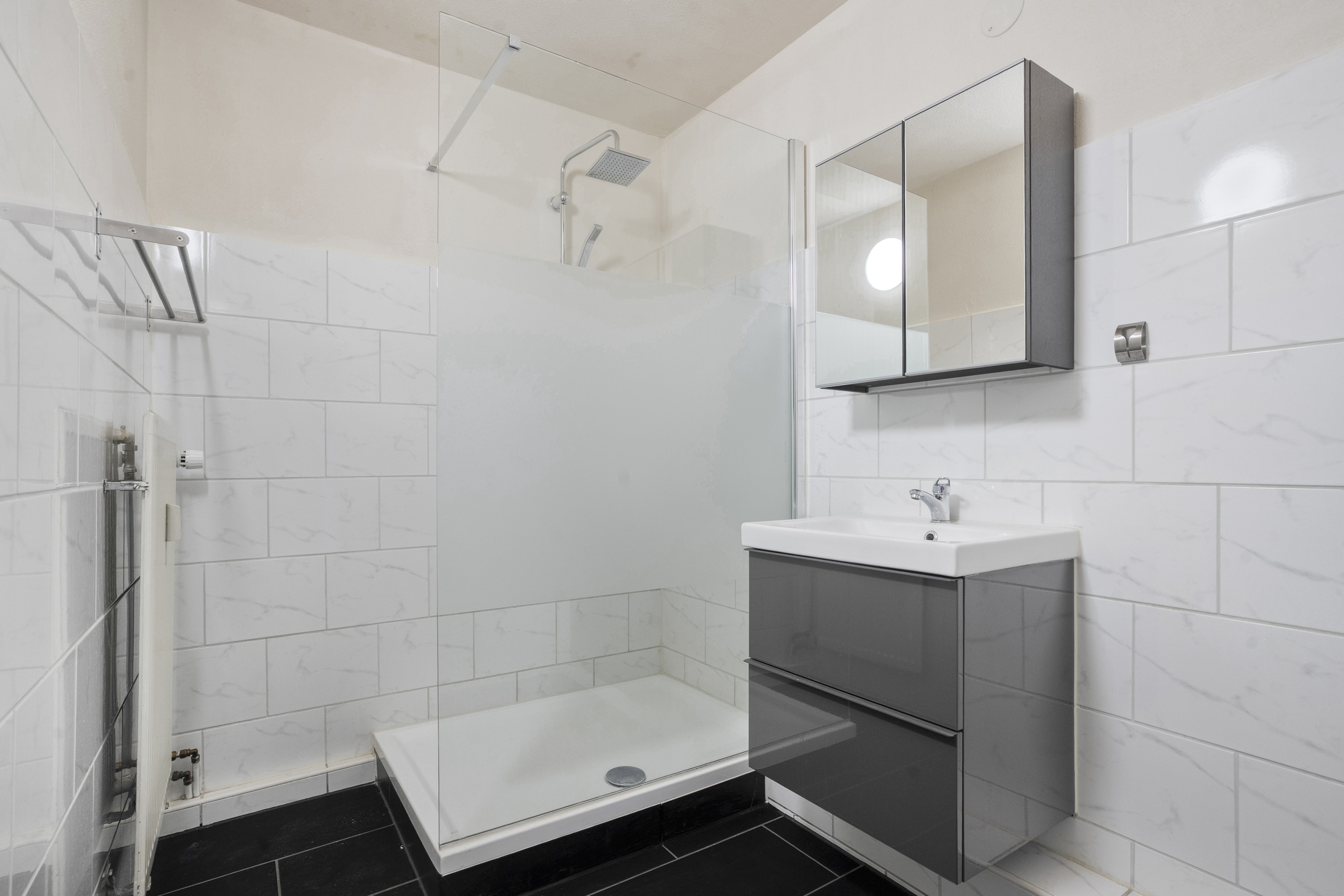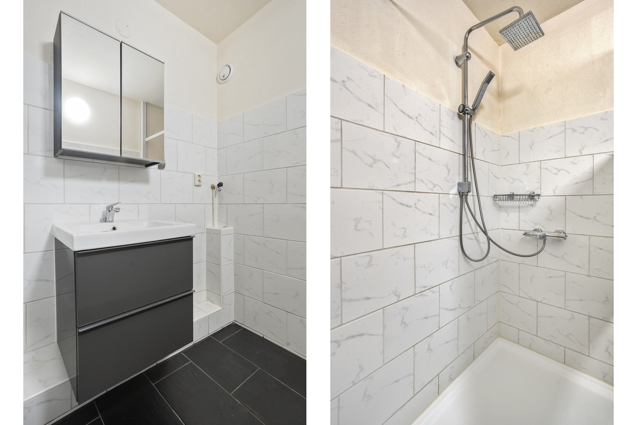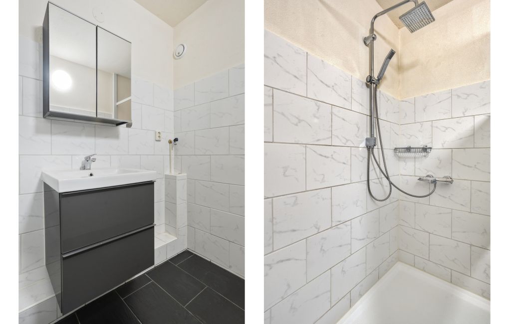 Het appartement beschikt over twee ruime slaapkamers. Vanuit één van de slaapkamers heb je directe toegang tot het tweede balkon. Deze ligt op het noorden, dus de slaapkamers zijn heerlijk koel. En zelfs op warme dagen kan je met plezier buiten zitten. De badkamer is praktisch ingericht en voorzien van een inloopdouche, wastafelmeubel en een aansluiting voor de wasmachine.