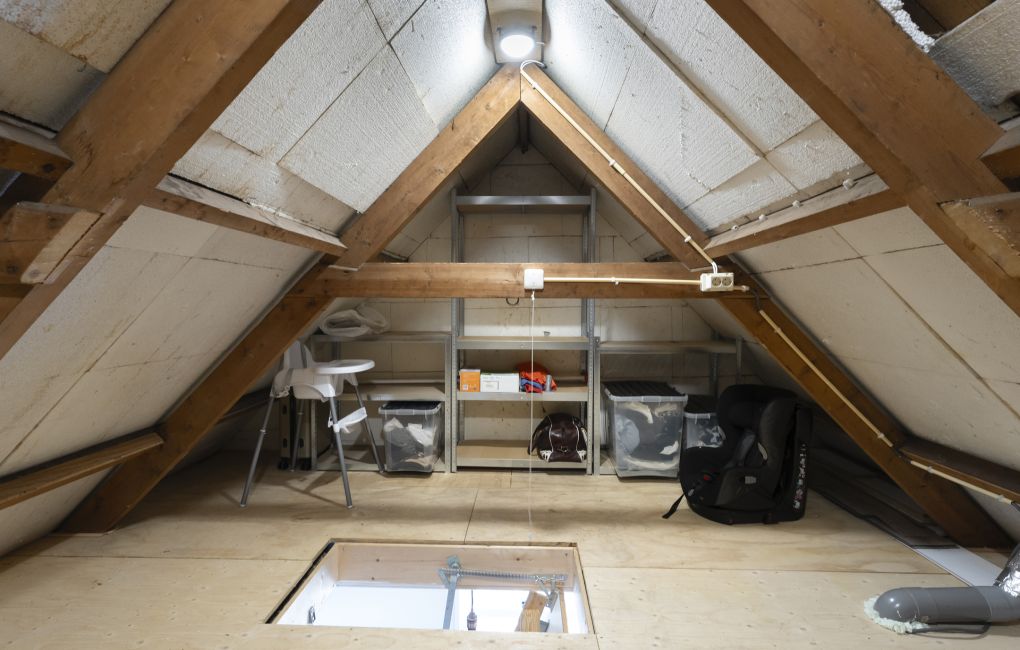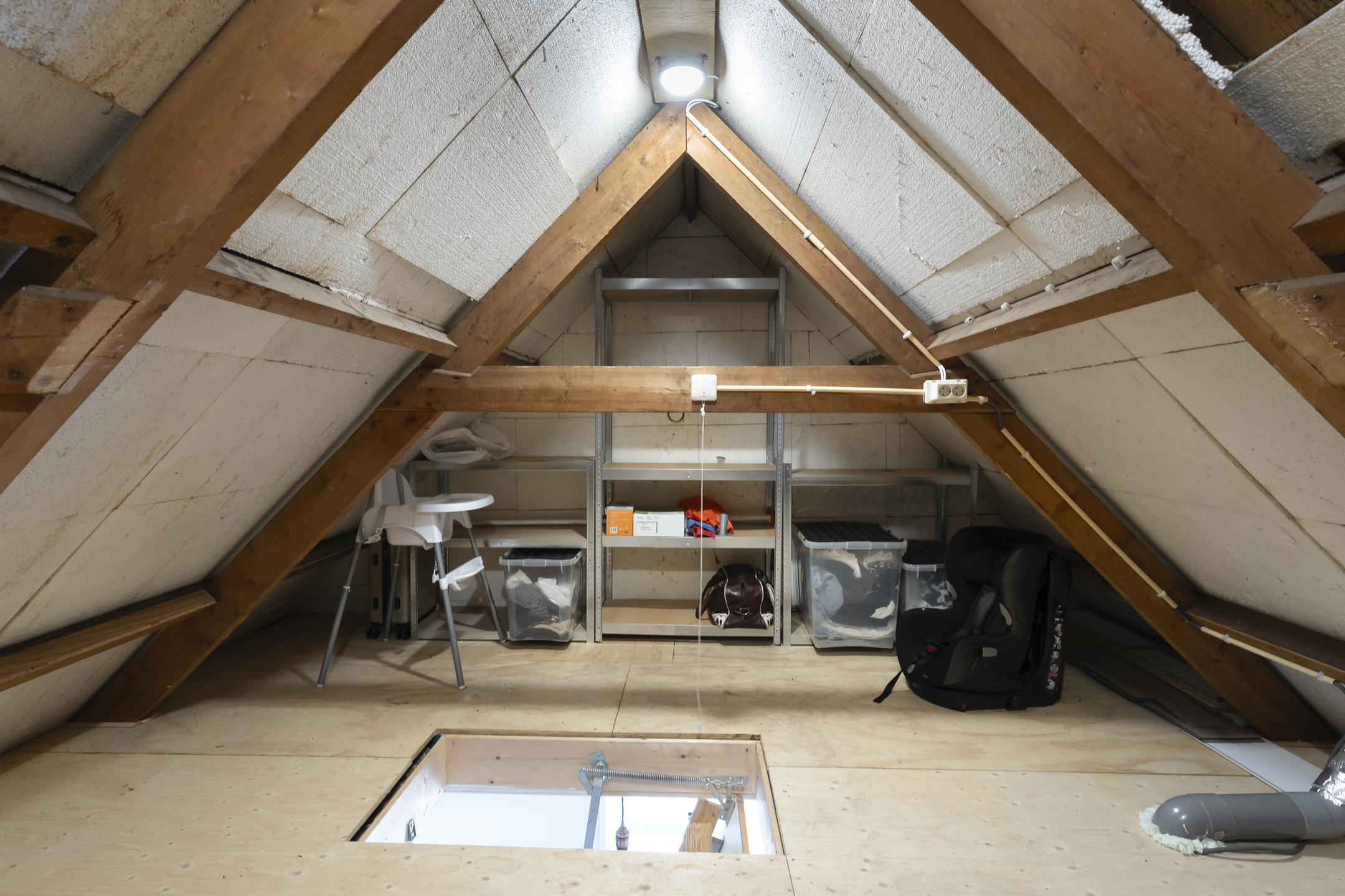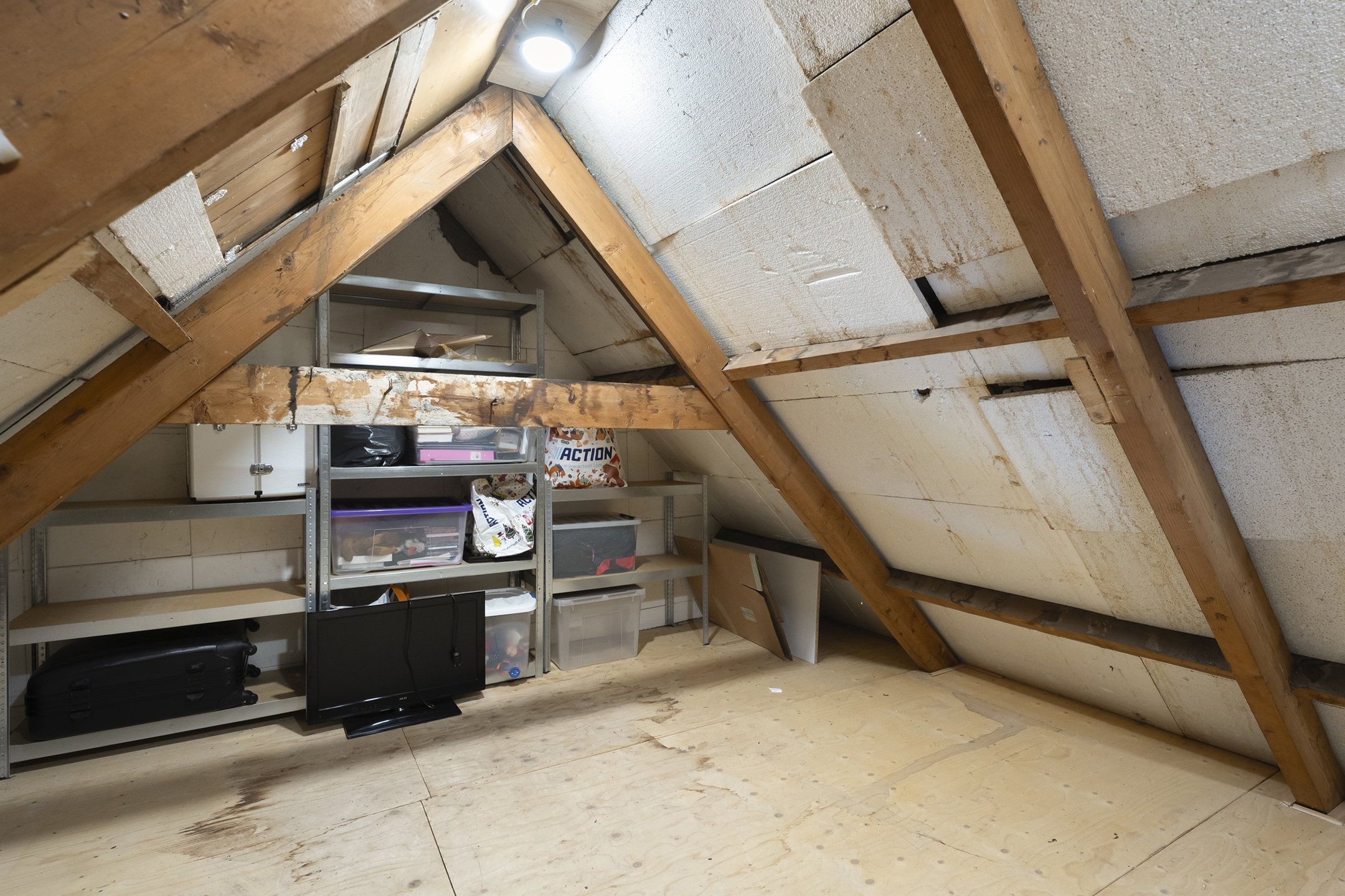 Via een vlizotrap bereik je de praktische zolderverdieping. Deze ruimte beschikt over stahoogte en biedt volop mogelijkheden voor het opbergen van spullen die je niet dagelijks nodig hebt.