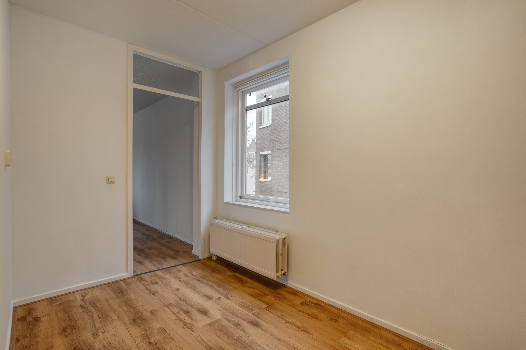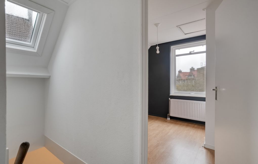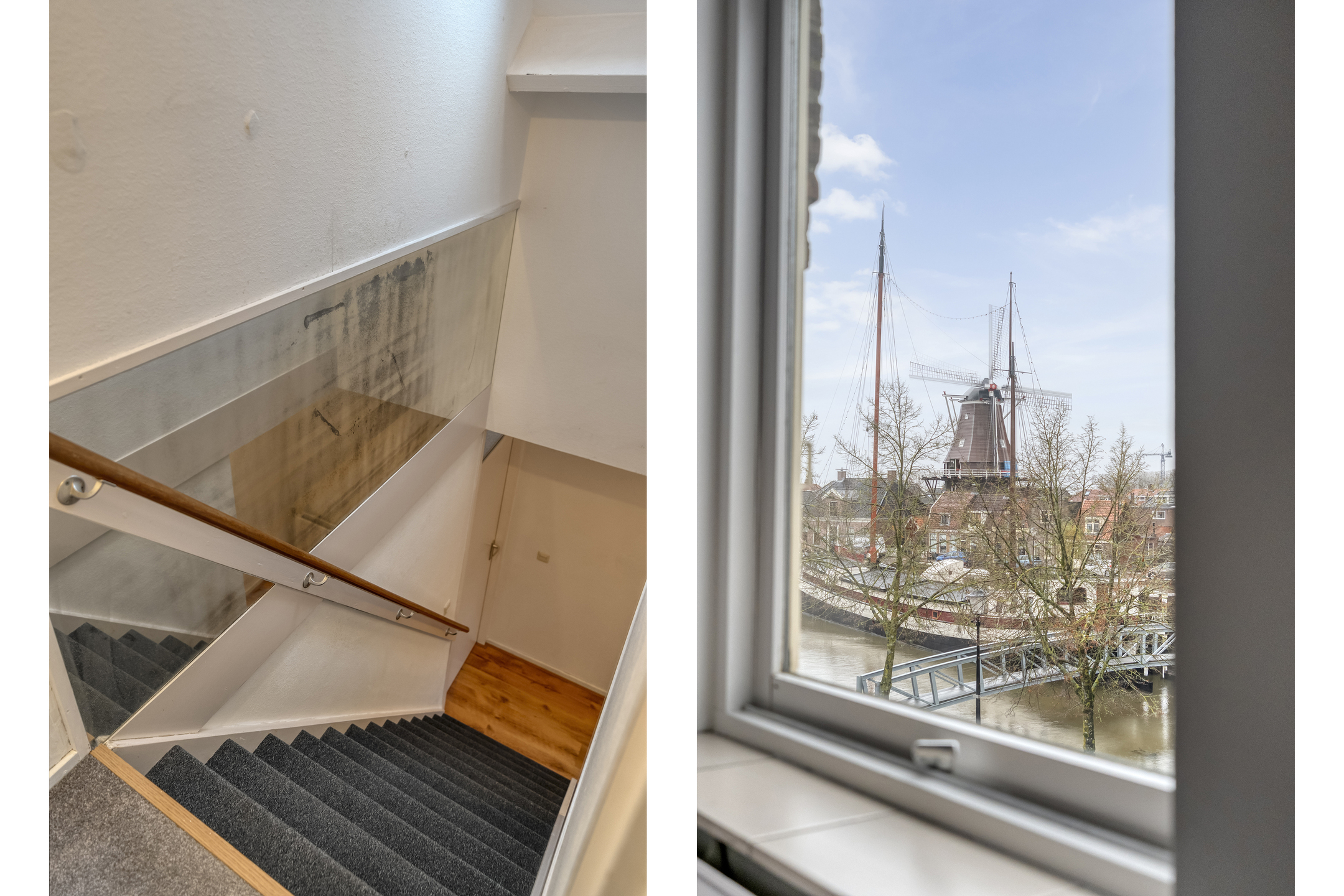 Je komt binnen in een ruime hal met toilet, handige bergruimte (inclusief plek voor wasmachine en CV) en de trap naar boven. De lichte woonkamer aan de grachtkant is er eentje waar je meteen blij van wordt, hier kijk je zo het water over. Via de woonkamer stap je het inpandige balkon op: perfect voor een kop koffie in de ochtend of een borrel aan het einde van de dag. De keuken grenst direct aan de woonkamer, lekker praktisch. Deze verdieping is voorzien van een warme laminaatvloer.