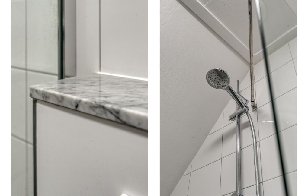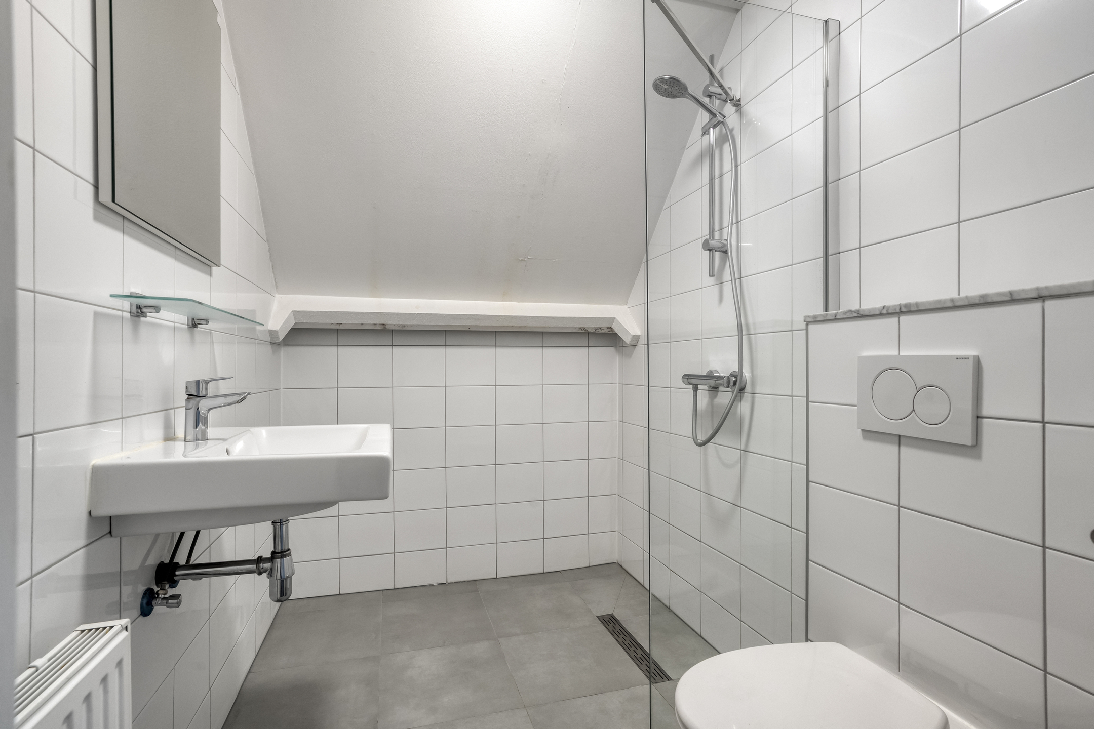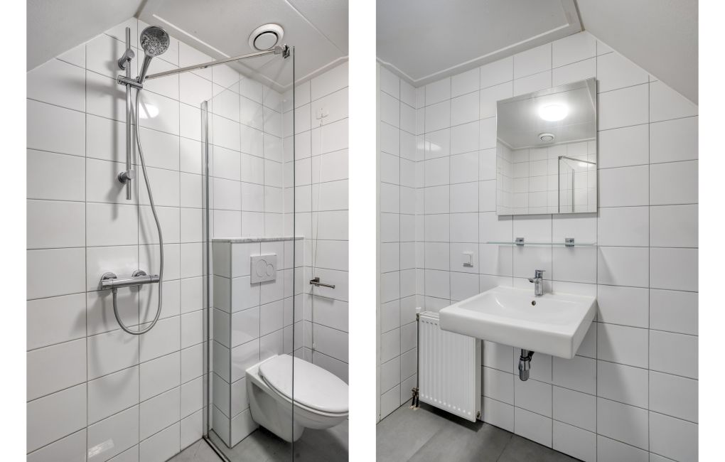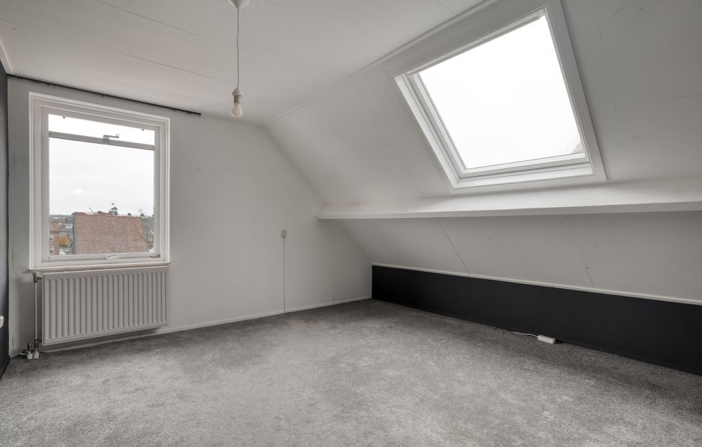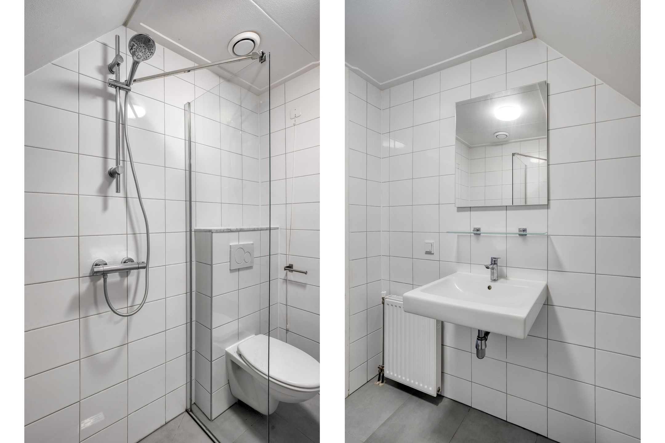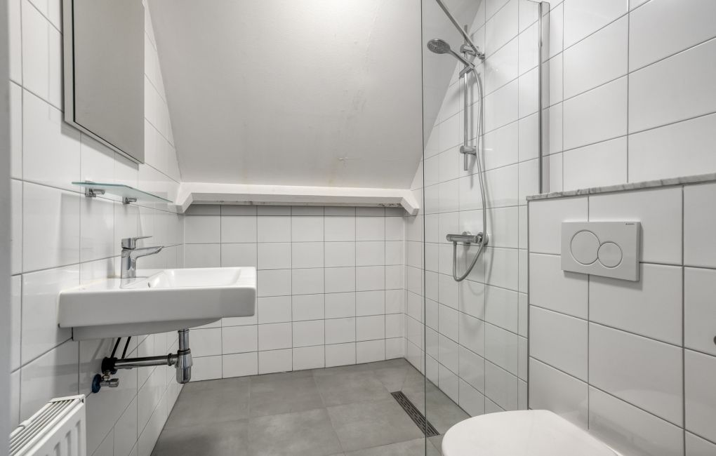Boven vind je twee ruime slaapkamers en een nette badkamer met douche, wastafel en nog een tweede toilet. Deze verdieping is deels voorzien van een laminaatvloer een deels van vloerbedekking in een warm grijze kleur. Extra pluspunt: via de overloop én de achterste slaapkamer heb je toegang tot de bergzolder. Ideaal voor spullen die je niet dagelijks nodig hebt.