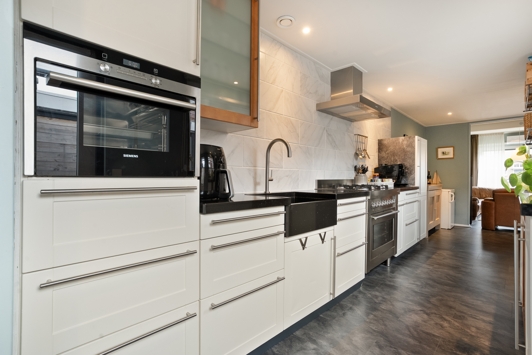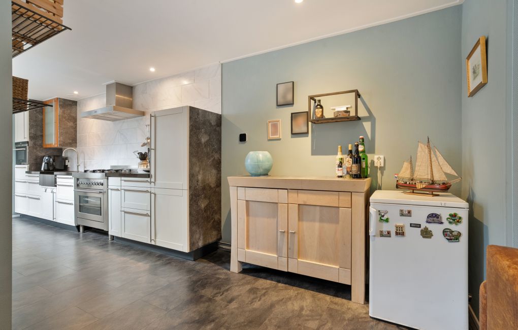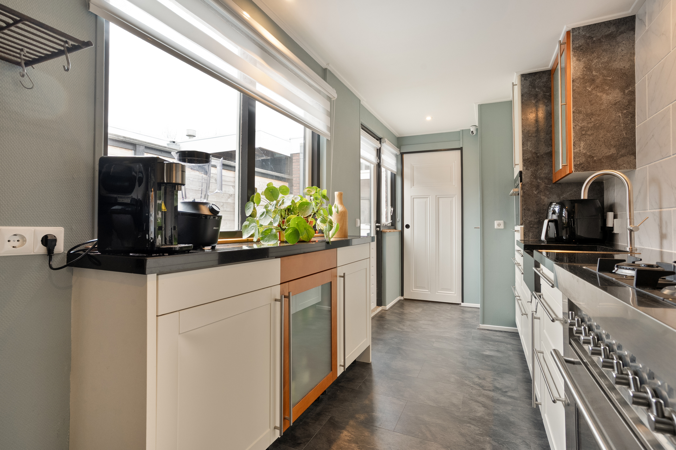 Via de entree met trapopgang bereik je de sfeervolle living met pelletkachel en warme laminaatvloer. Aansluitend bevindt zich de moderne, open keuken van het merk Siematic, uitgerust met diverse inbouwapparatuur zoals o.a. een stoomoven, een extra groot RVS-fornuis en volop werkruimte voor de kookliefhebber. Naast de keuken is een aparte ruimte geschikt voor wasmachine en droger met warmwateraansluiting. Via de openslaande deur in de keuken is de besloten binnenplaats bereikbaar, waar je al vroeg in het voorjaar en tot laat in het najaar heerlijk buiten kunt zitten.