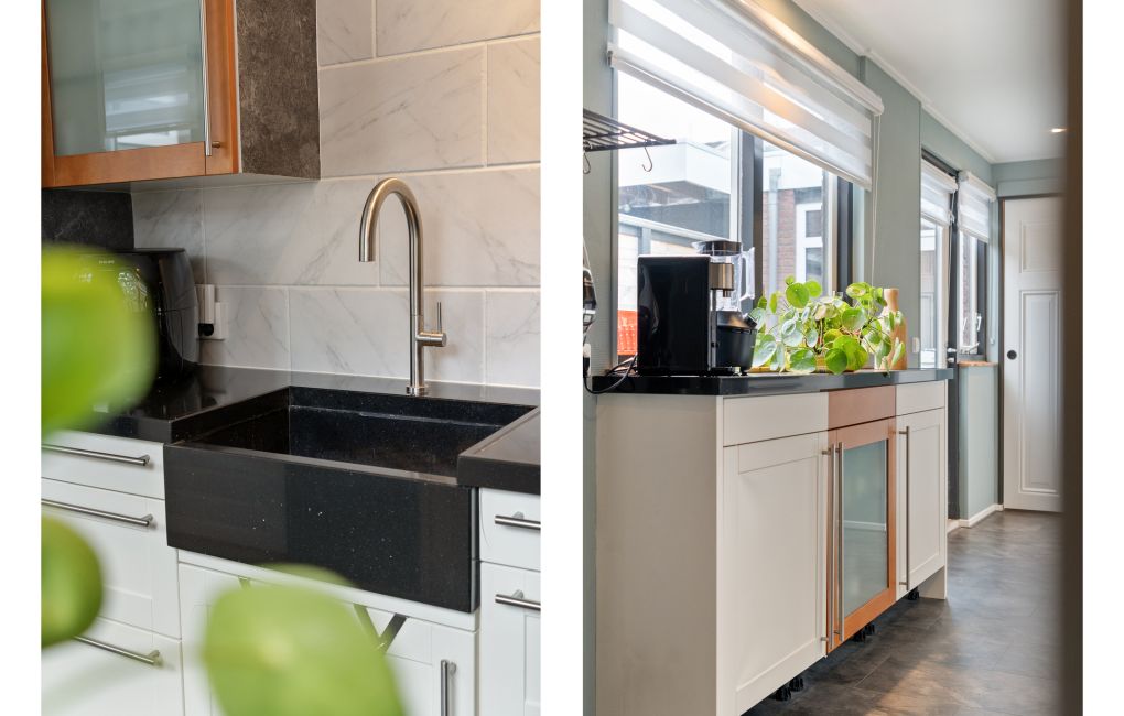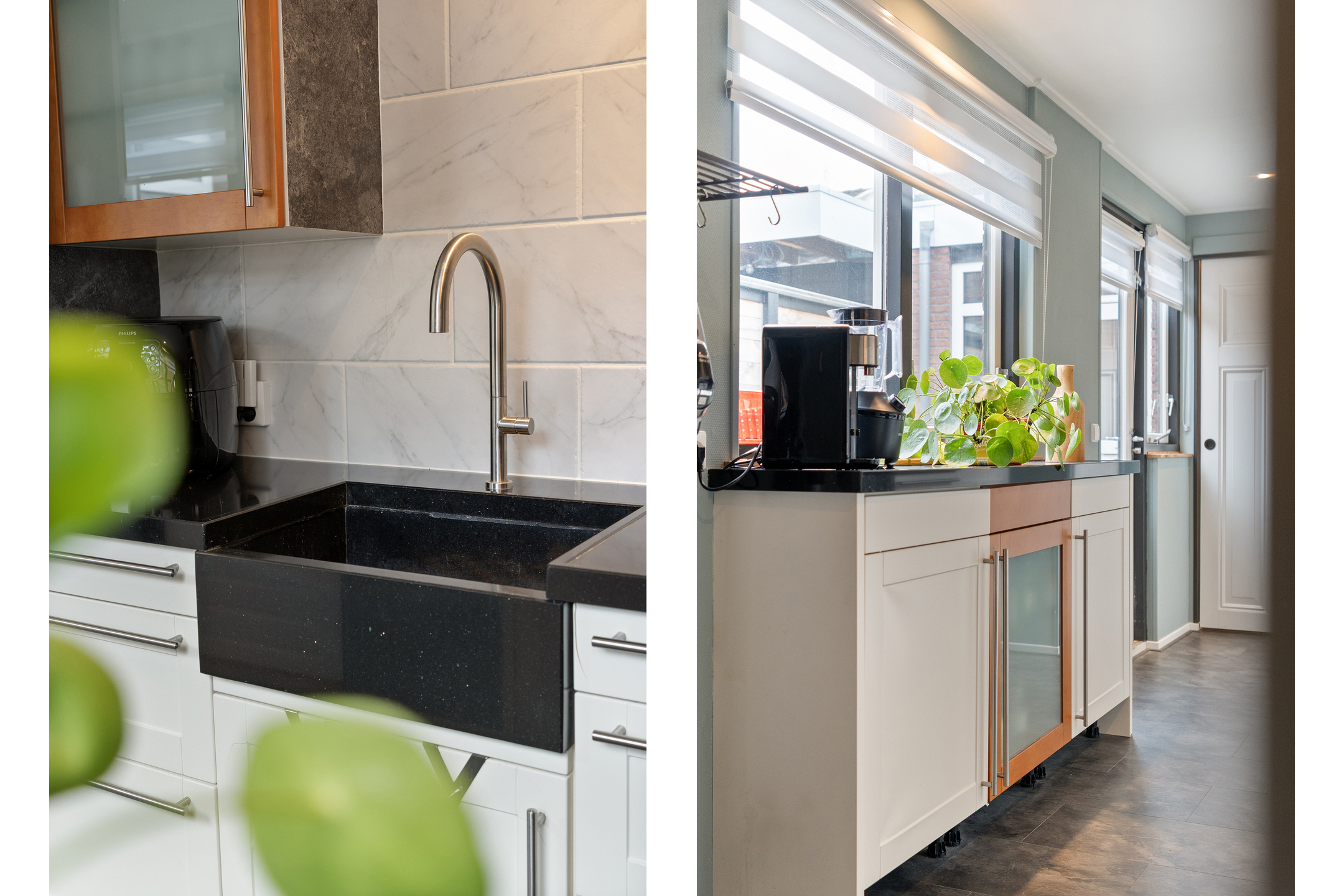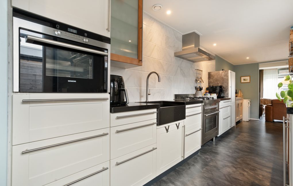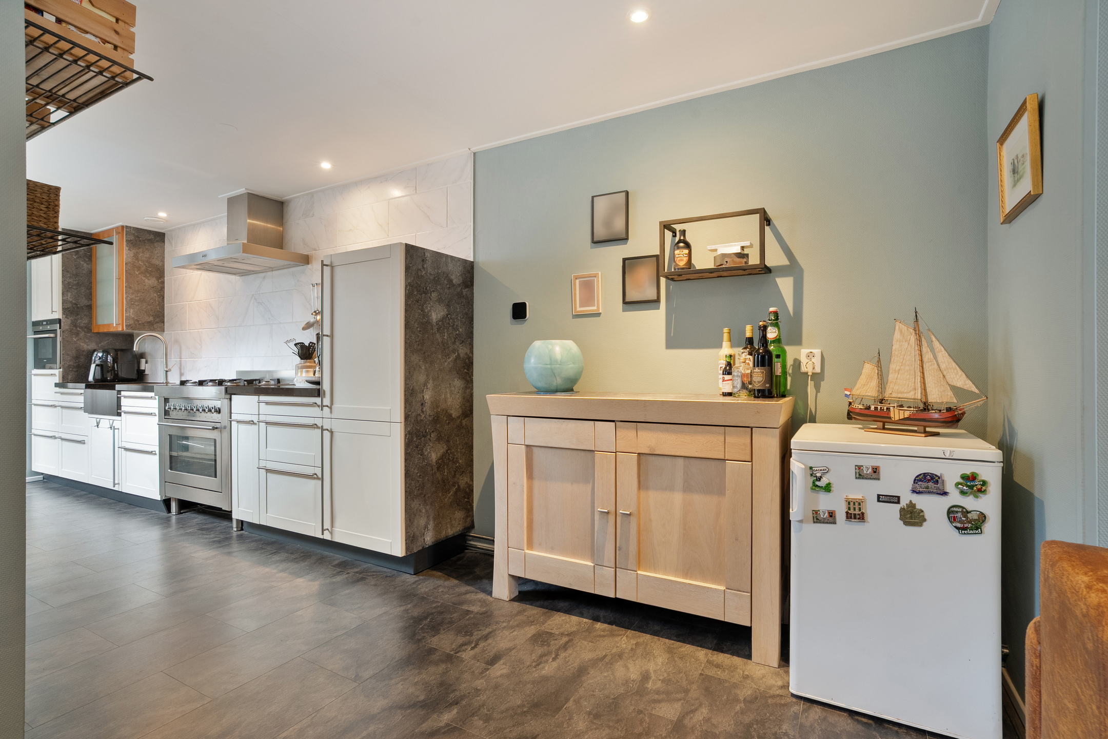 Via de entree met trapopgang bereik je de sfeervolle living met pelletkachel en warme laminaatvloer. Aansluitend bevindt zich de moderne, open keuken van het merk Siematic, uitgerust met diverse inbouwapparatuur zoals o.a. een stoomoven, een extra groot RVS-fornuis en volop werkruimte voor de kookliefhebber. Naast de keuken is een aparte ruimte geschikt voor wasmachine en droger met warmwateraansluiting. Via de openslaande deur in de keuken is de besloten binnenplaats bereikbaar, waar je al vroeg in het voorjaar en tot laat in het najaar heerlijk buiten kunt zitten.