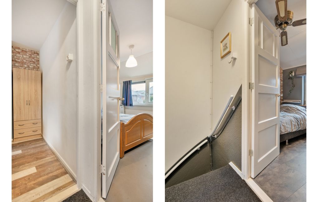 Op deze verdieping bevinden zich drie slaapkamers. Alle kamers zijn aan de buitenzijde voorzien van rolluiken, wat in combinatie met de mobiele airco in de hoofdslaapkamer zorgt voor een aangenaam binnenklimaat.