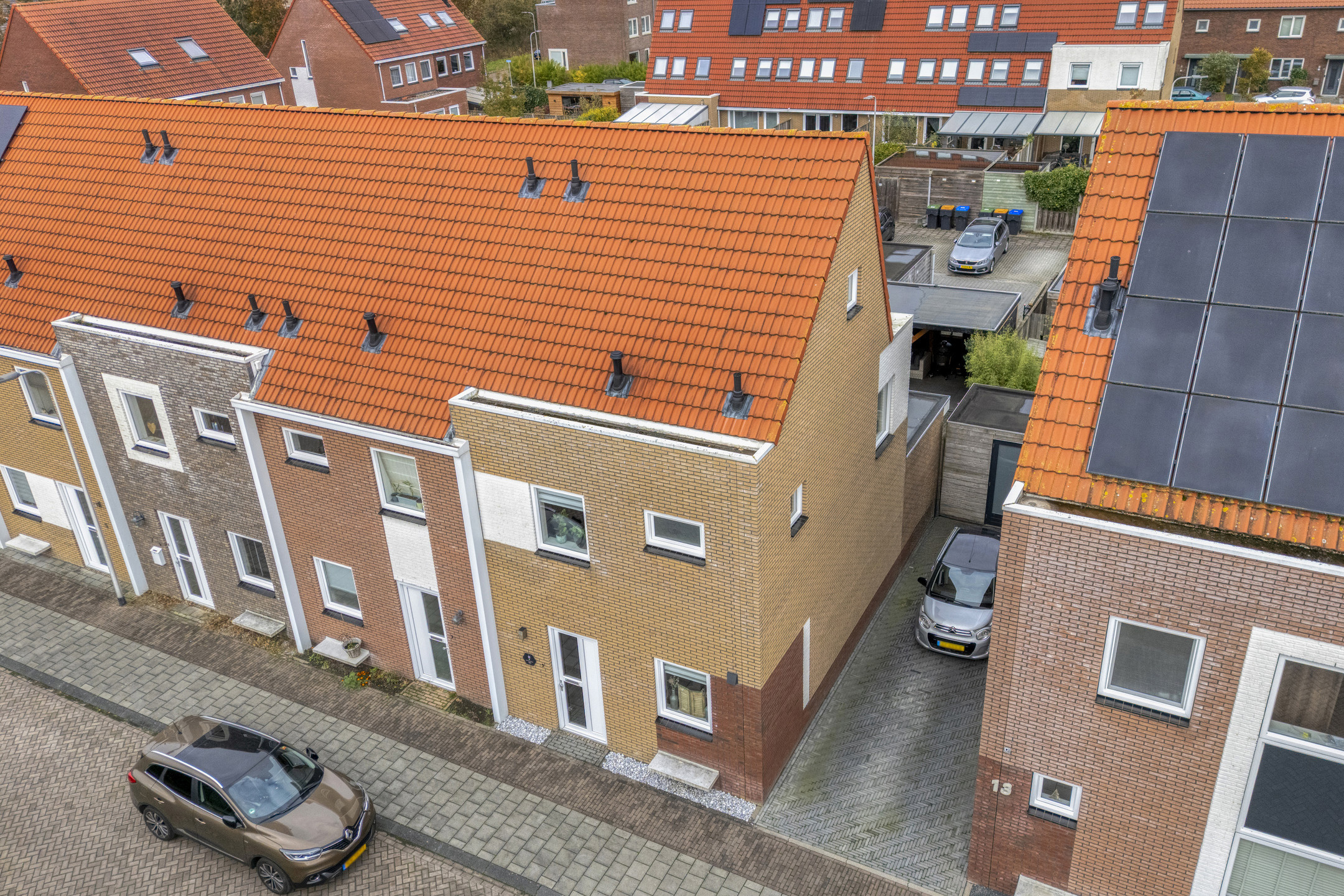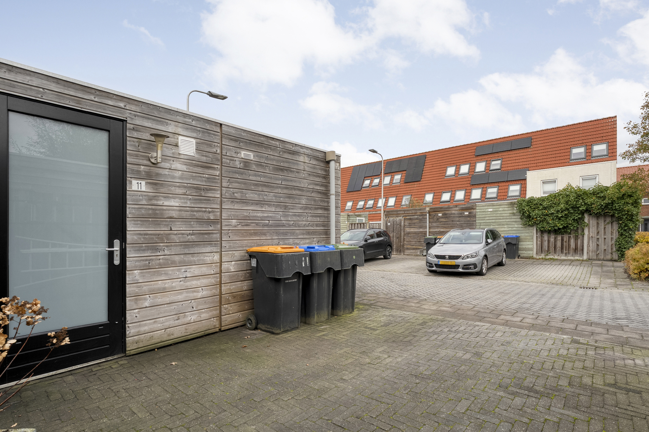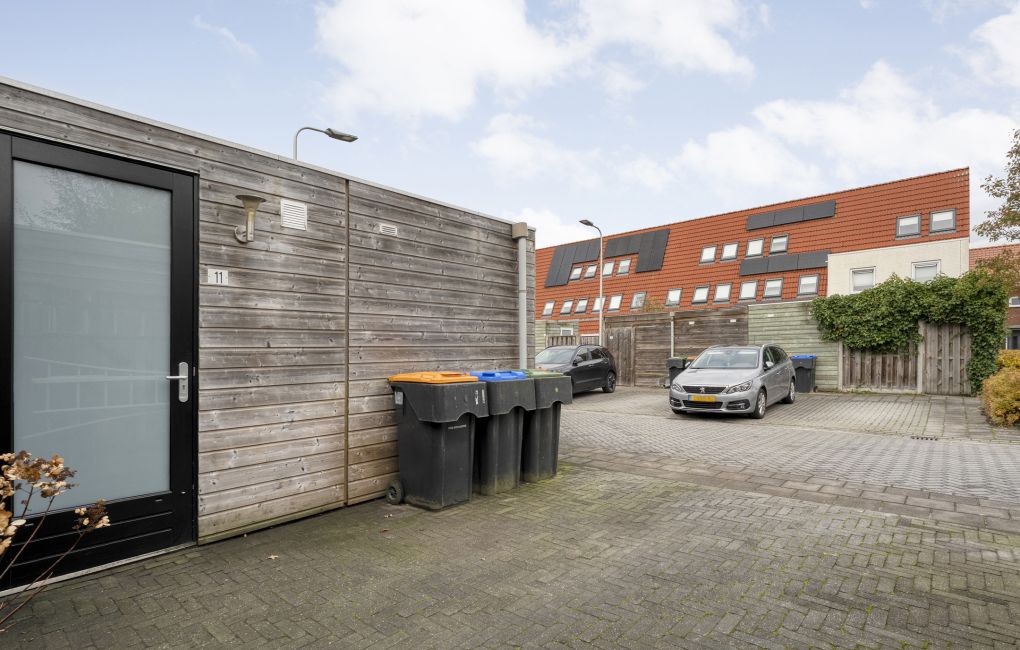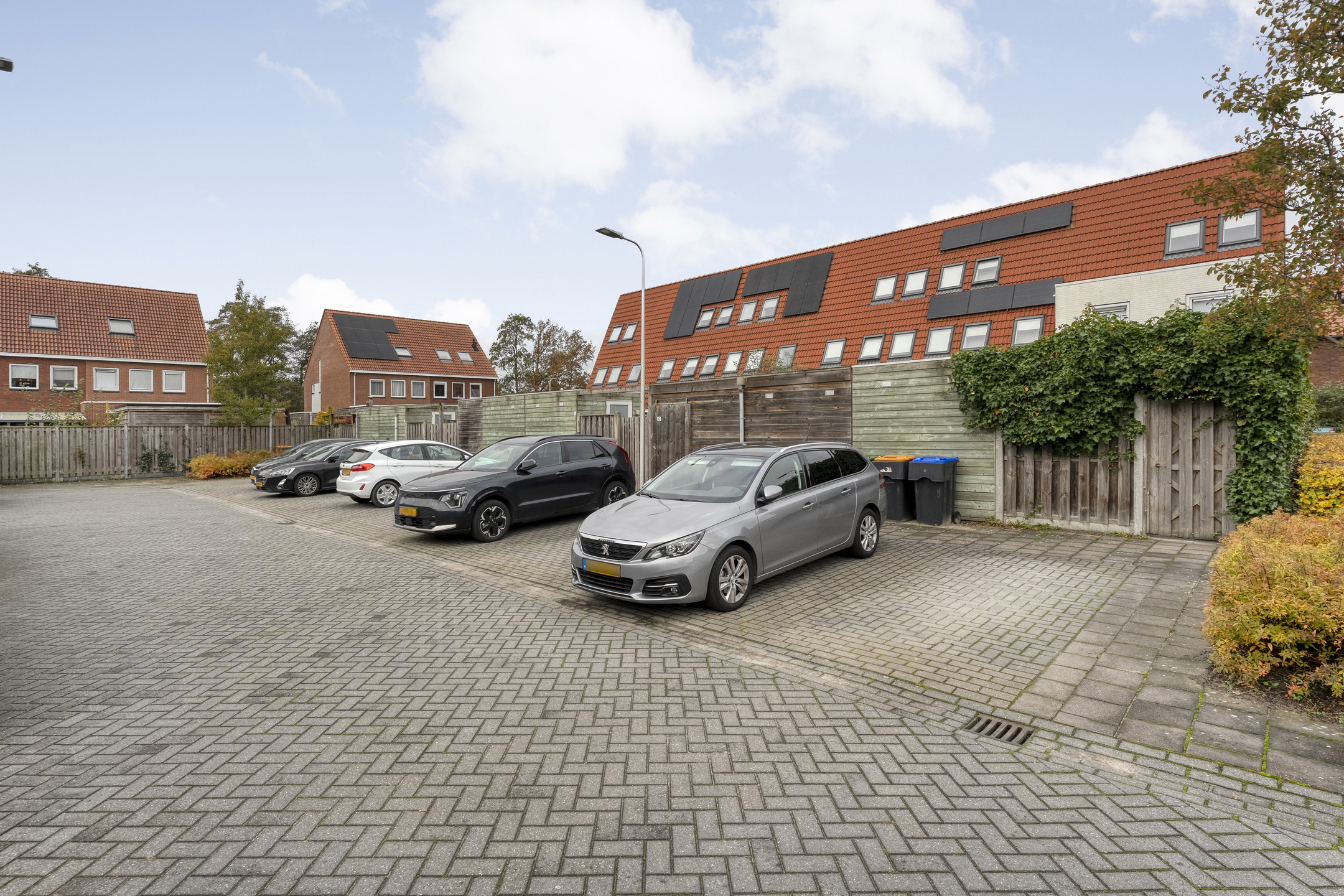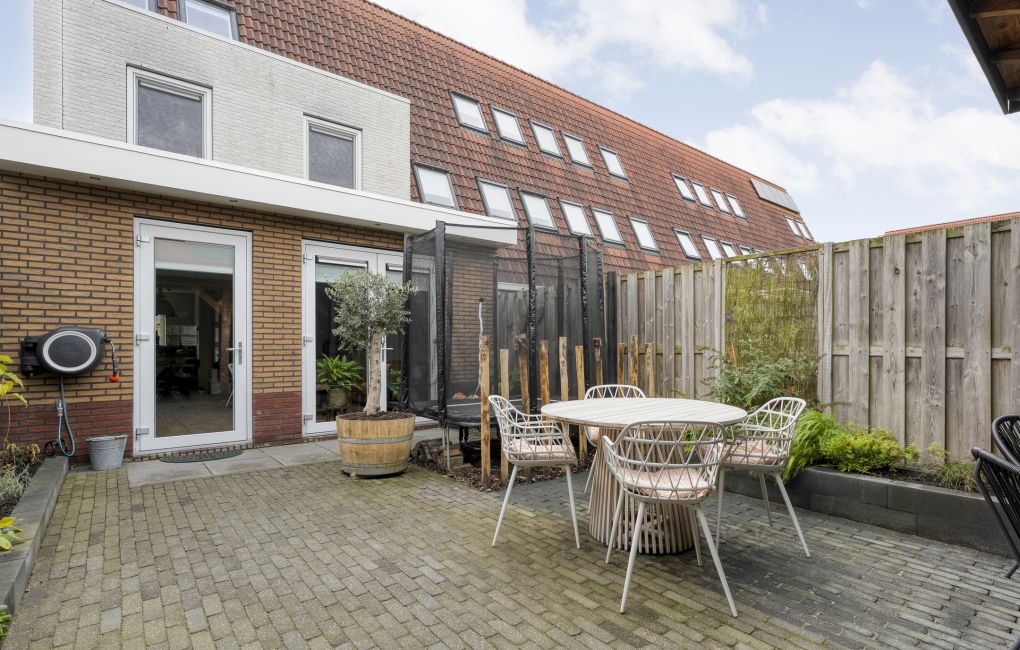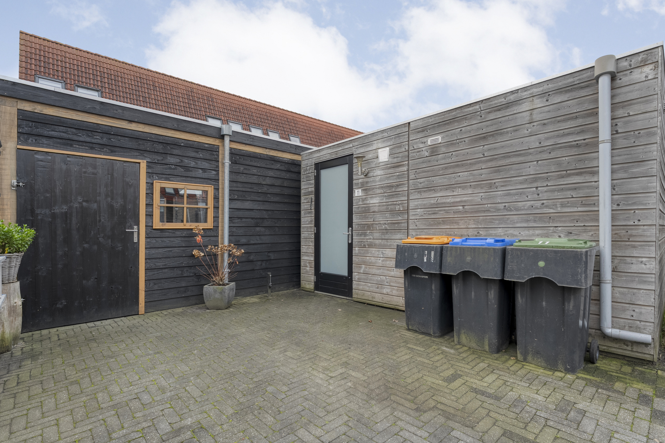 Achter de overkapping staat een houten berging. Perfect voor het opbergen van fietsen, tuingereedschap en andere spullen, en bovendien een praktische aanvulling op de buitenruimte. Direct naast de berging bevindt zich een praktische oprit, ideaal voor je eigen parkeergelegenheid voor de auto.