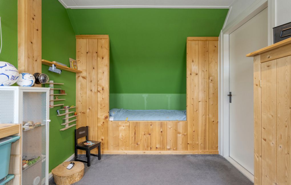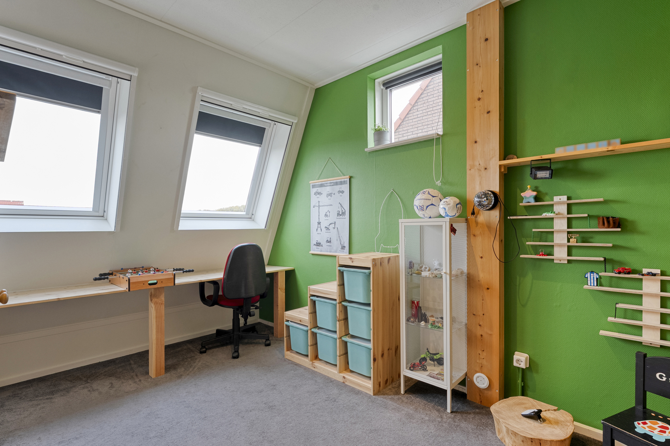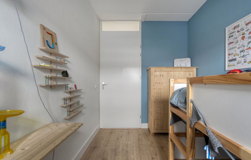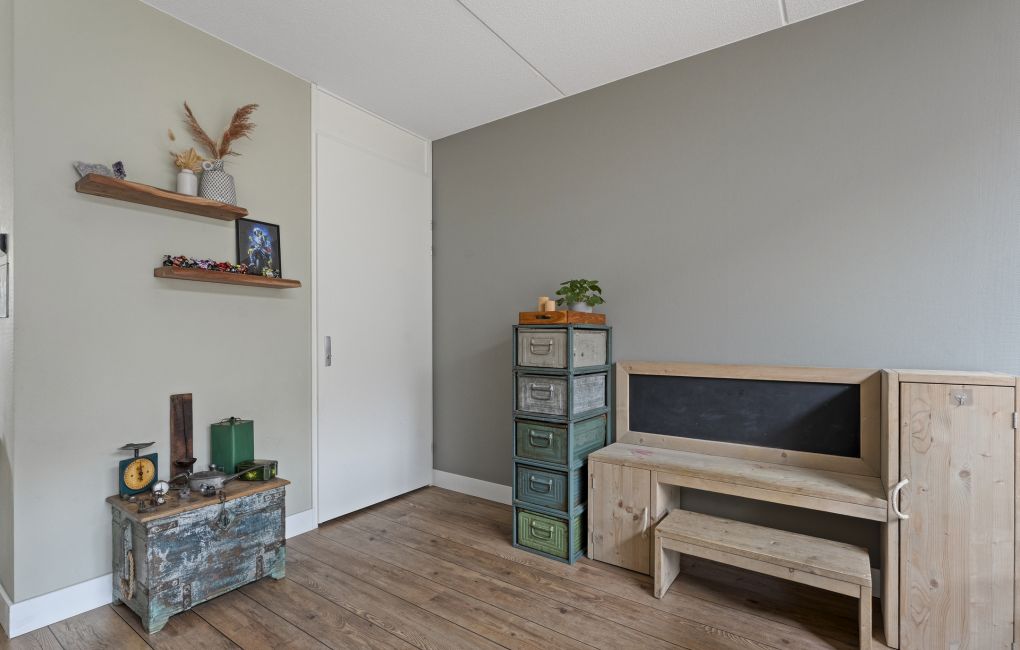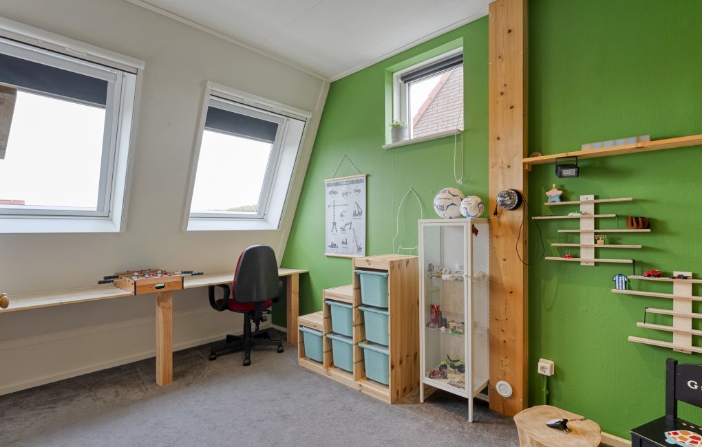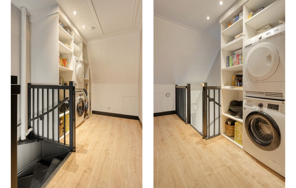 Deze verdieping biedt een derde, gezellige slaapkamer die is voorzien van twee dakramen, waardoor er veel natuurlijk licht binnenvalt en je in de zomer toch comfortabel kunt ventileren. Daarnaast is op deze verdieping een fraai ingerichte wasruimte gecreëerd, compleet met een ruime kast voor het opbergen van wasbenodigdheden en extra spullen. Een praktische en functionele verdieping die perfect aansluit bij het comfort van de woning.