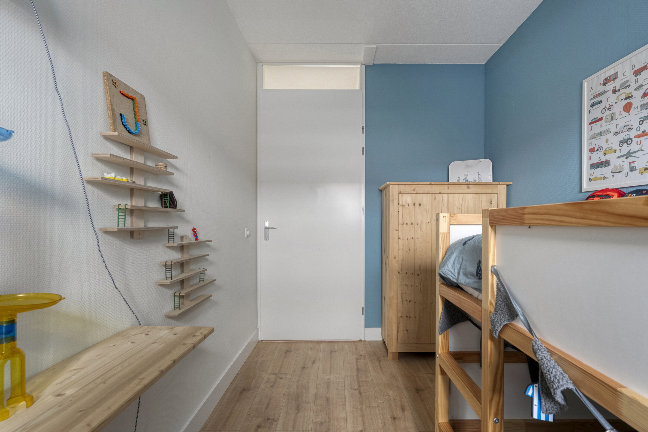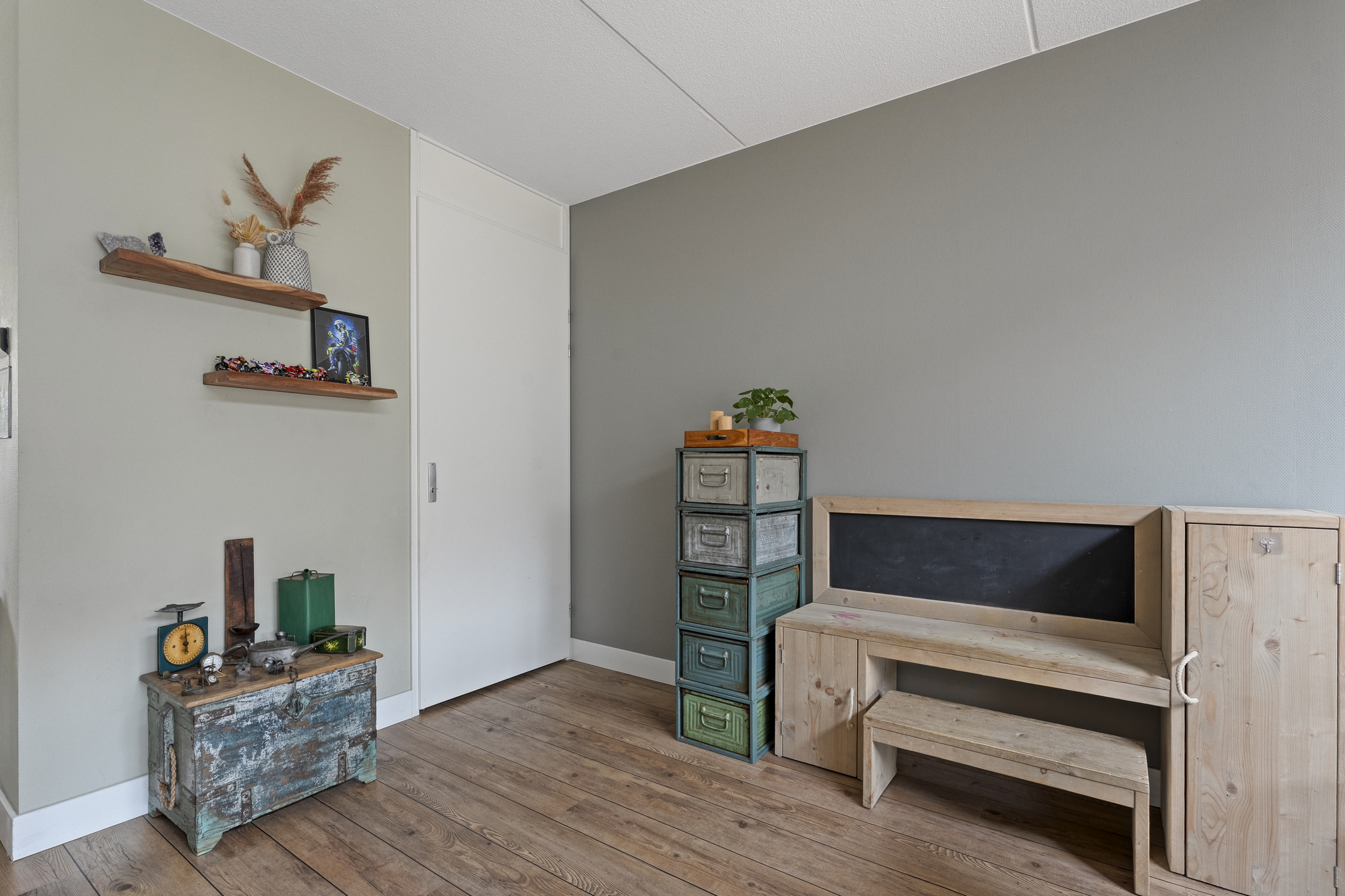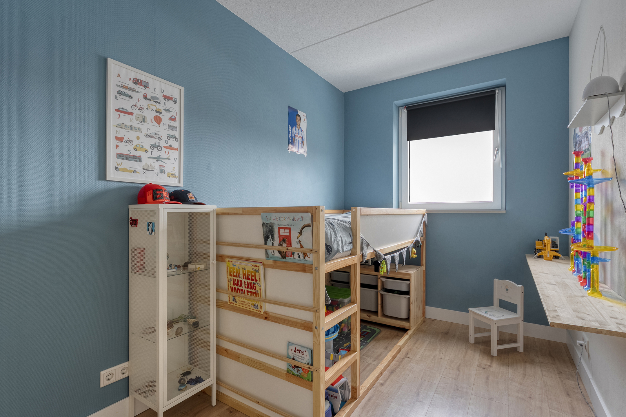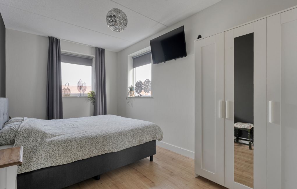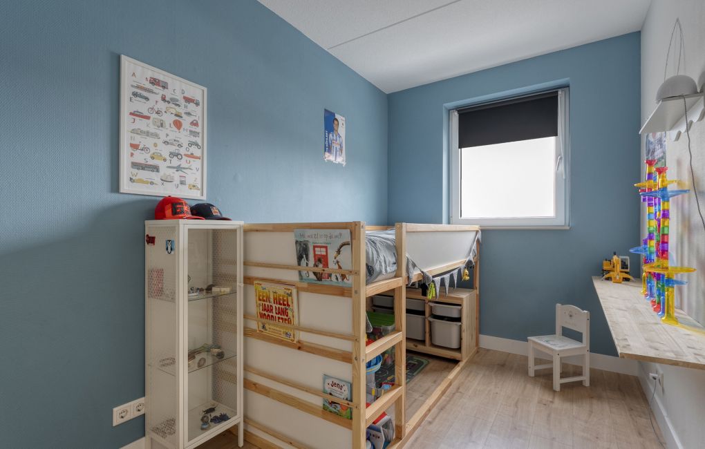 Deze verdieping biedt een derde, gezellige slaapkamer die is voorzien van twee dakramen, waardoor er veel natuurlijk licht binnenvalt en je in de zomer toch comfortabel kunt ventileren. Daarnaast is op deze verdieping een fraai ingerichte wasruimte gecreëerd, compleet met een ruime kast voor het opbergen van wasbenodigdheden en extra spullen. Een praktische en functionele verdieping die perfect aansluit bij het comfort van de woning.