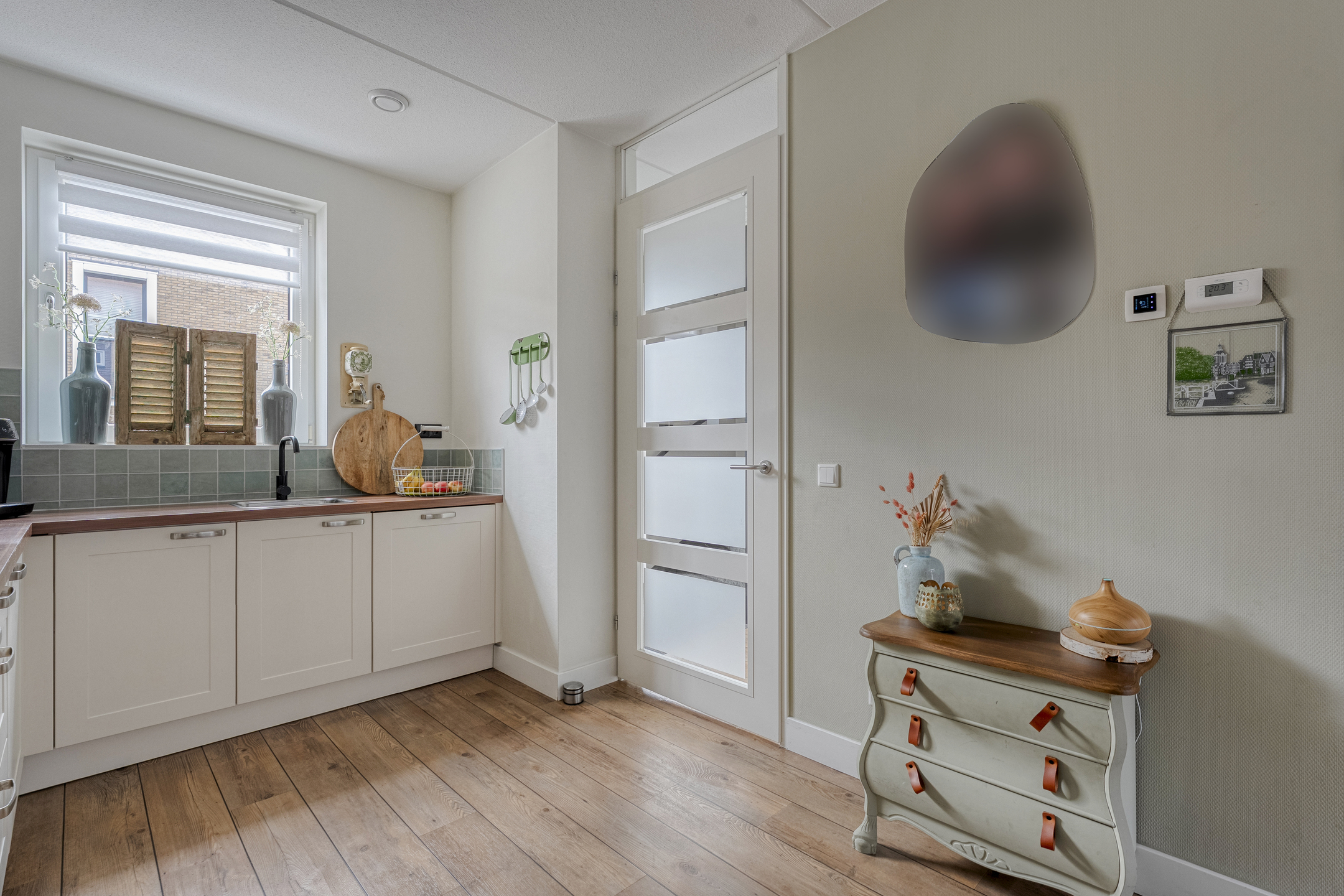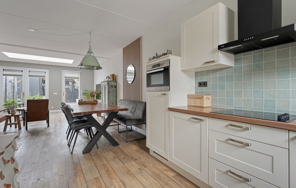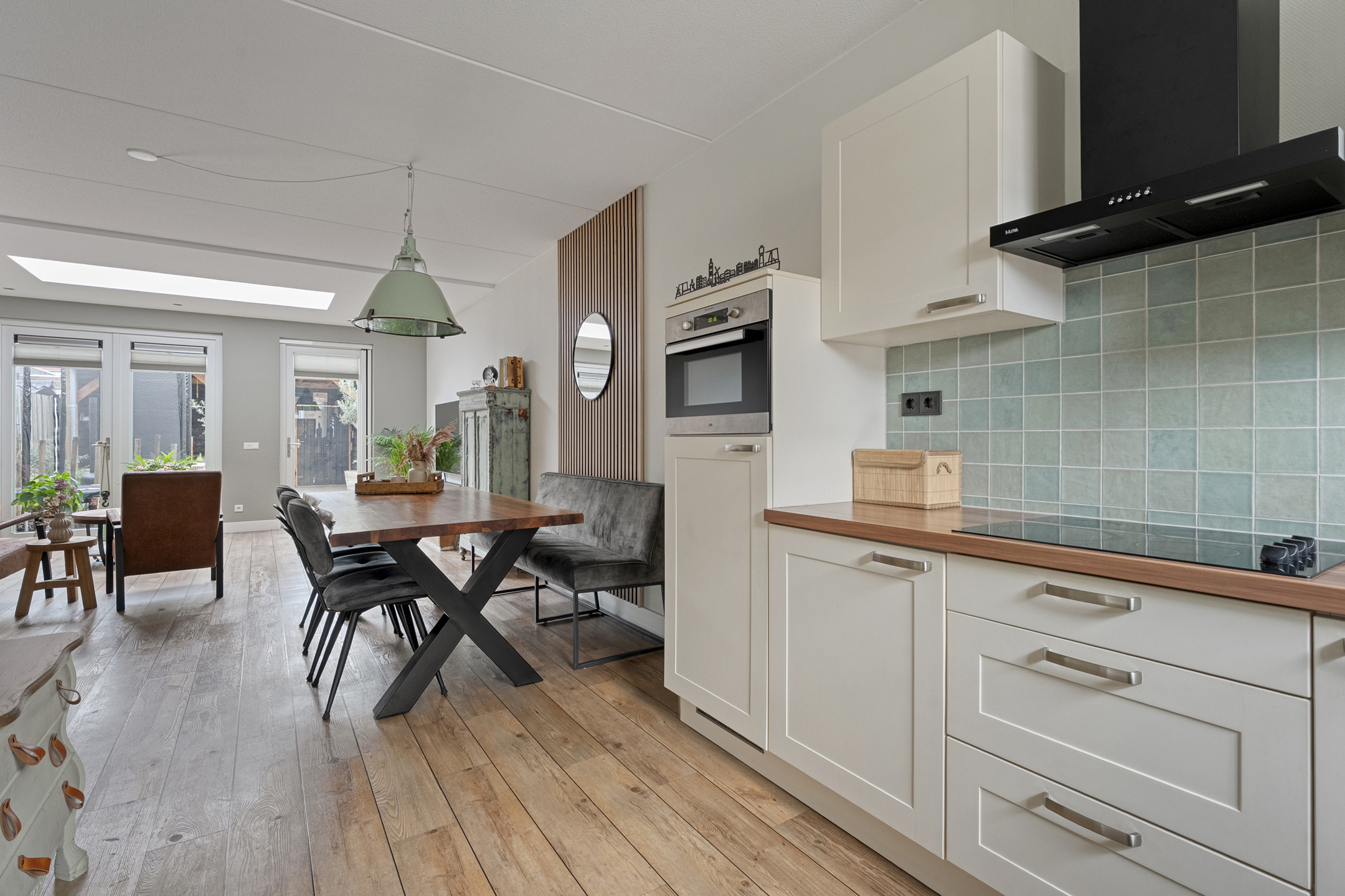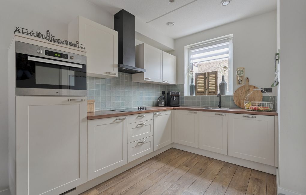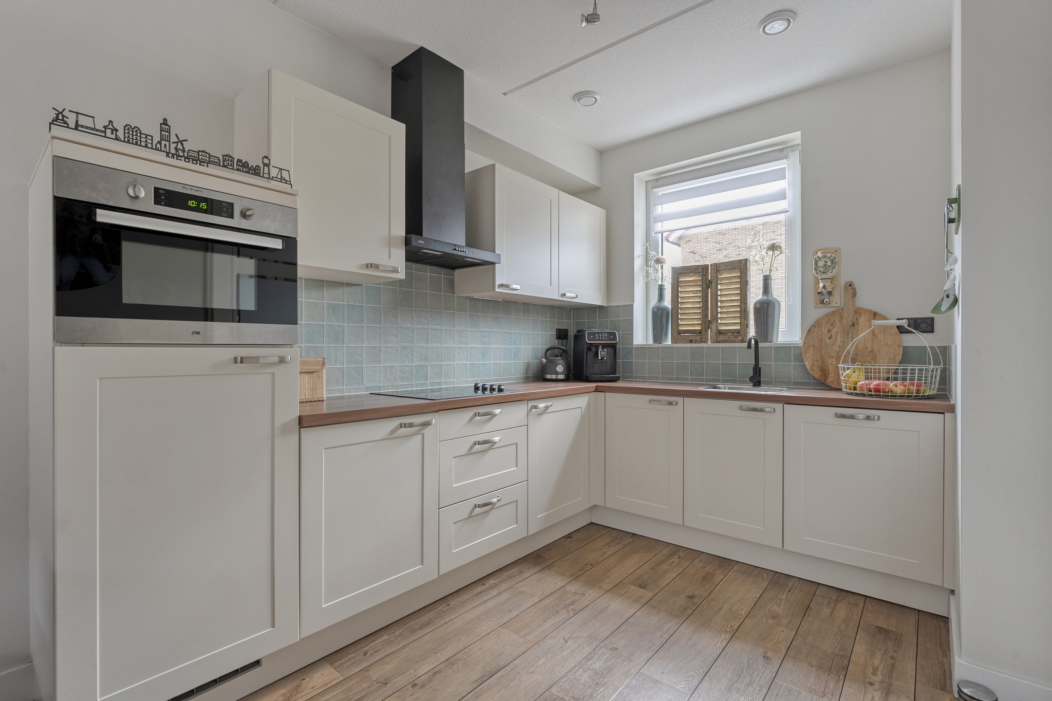 Aan de voorzijde bevindt zich de moderne keuken, voorzien van diverse inbouwapparatuur zoals onder andere een keramische kookplaat, afzuigkap, combi-oven, vaatwasser en koelkast. Hier kun je met gemak en plezier de lekkerste gerechten bereiden.
