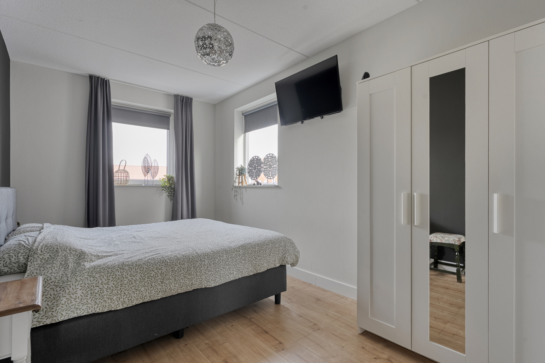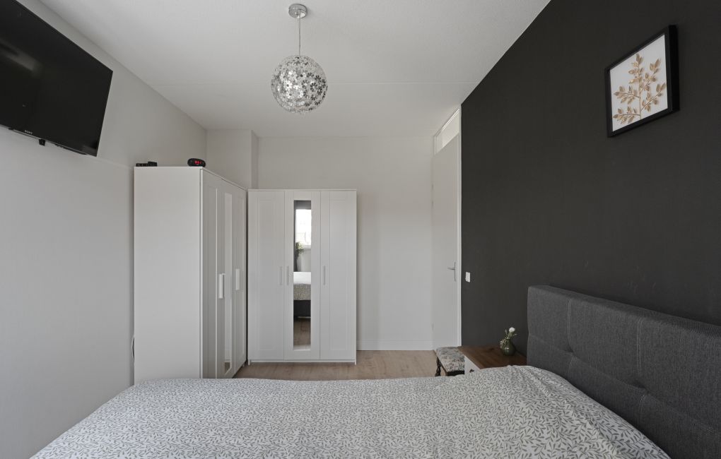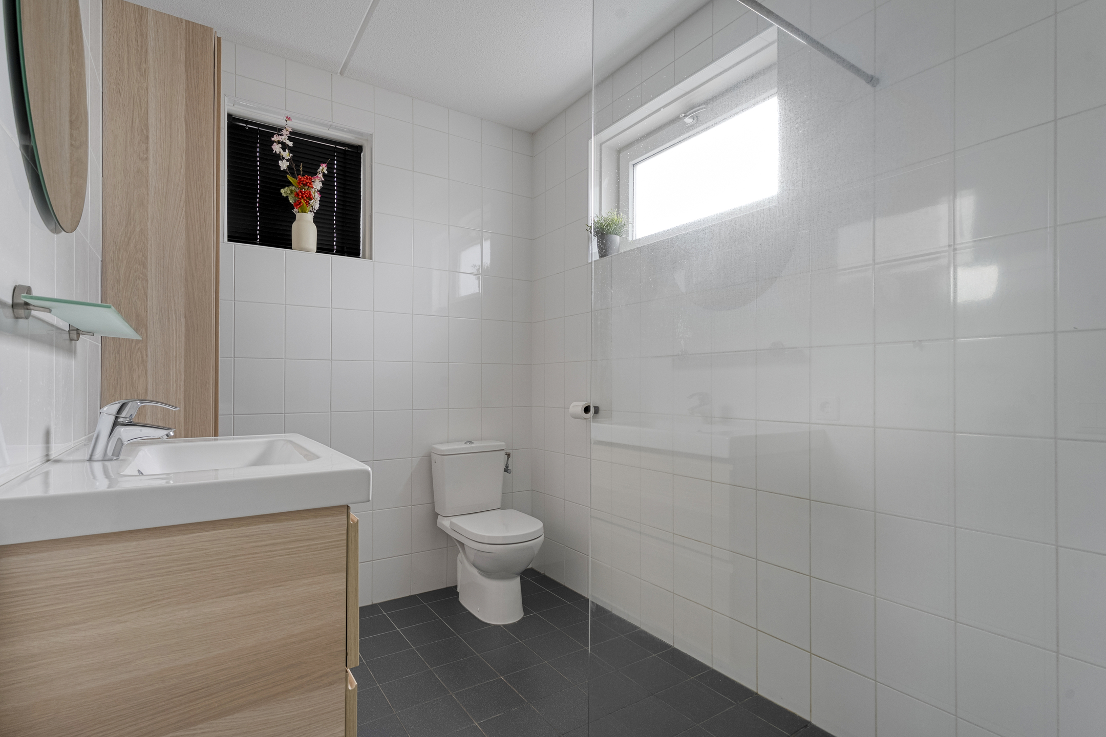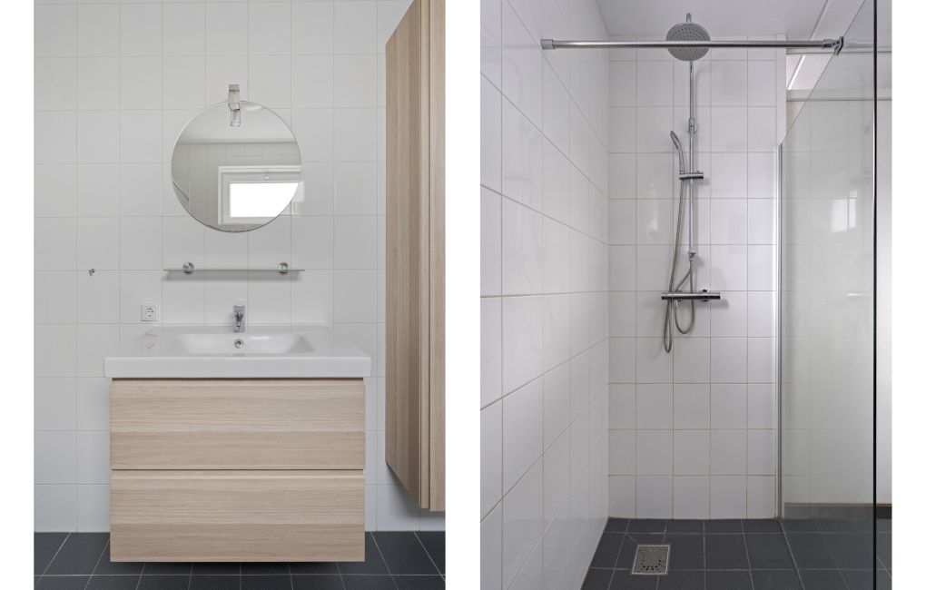 De trapopgang, bekleed met comfortabele vloerbedekking, leidt naar de twee slaapkamers en de badkamer. De slaapkamers zijn beide prettig van formaat en beschikken over voldoende daglicht dankzij de aanwezige raampartijen. De badkamer is stijlvol ingericht en uitgerust met een ruime inloopdouche, tweede toilet en een fraai wastafelmeubel met wastafel en bijpassende kolomkast voor extra opbergruimte. Een fijne plek om de dag fris te beginnen of ontspannen af te sluiten. Bovendien is deze verdieping, net als de begane grond, voorzien van vloerverwarming en -koeling!