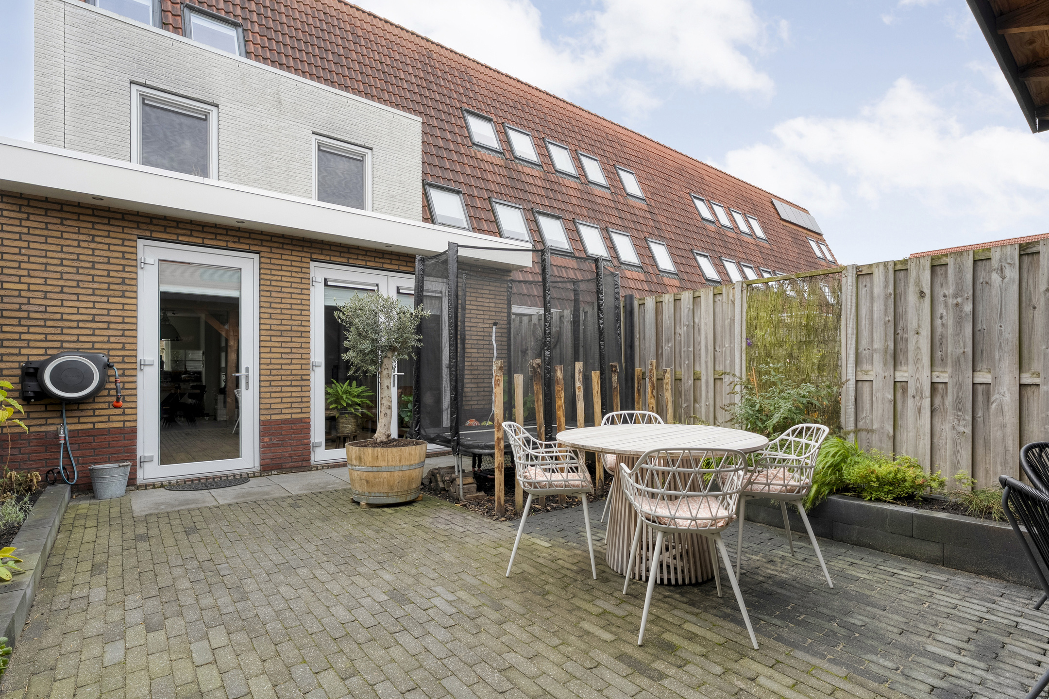 De diepe, zonnige achtertuin met achterom vormt de ideale plek om te ontspannen, te tuinieren of lange zomeravonden door te brengen met familie en vrienden.